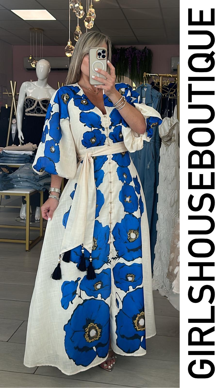 Romeo & Juliet Blue Puffed Sleeve Maxi Dress